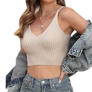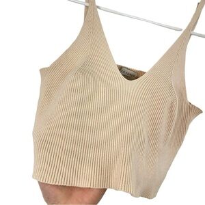 Dress Forum Cropped Tank Top Women Size Medium Neutral Beige Sweater Knit Ribbed