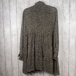 Dress Forum Dress Small Black Cream Floral Baby Doll Ruffle Peasant Boho Hippie