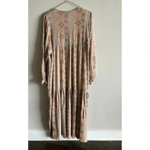 Dress Forum LA Tiered Maxi Dress Prairie Tassel Tie Flowy Floral Boho Brown Sz M