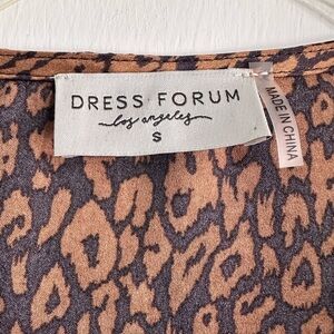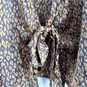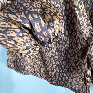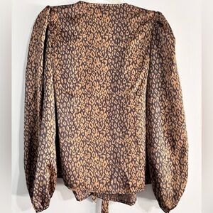 Dress Forum Leopard Print Wrap Top Small Long Sleeve Puff Shoulder Cinch Cuffs