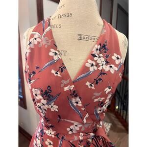Dress Forum Los Angeles Sleeveless V Neck Faux Wrap Floral Dress Size M EUC