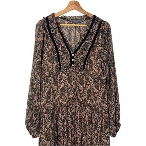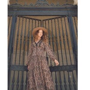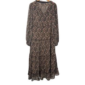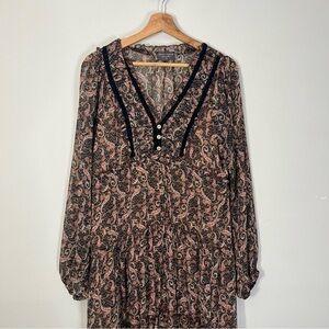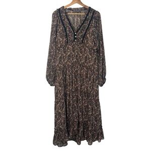 Dress Forum Medium Midi Dress Brown Paisley Tiered Long Sleeve Boho Festival