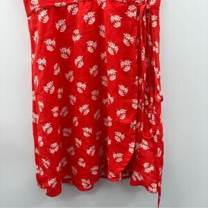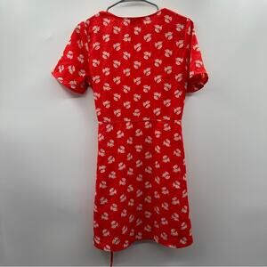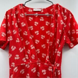 Dress Forum Pink & White Floral Print Short Sleeve Mini Wrap Dress Size M