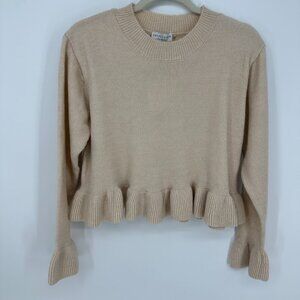 Dress Forum Ruffle Trim Cropped Sweater M Relaxed Fit Beige Tan Pullover NWT