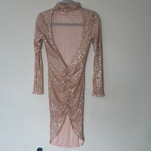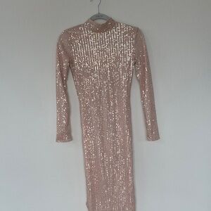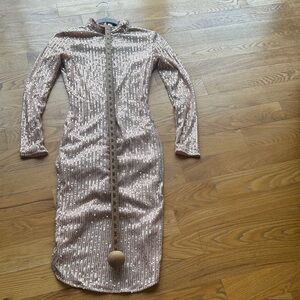 Shine bright in this stunning gold sequin dress. Perfect for any special occasion.