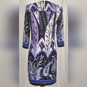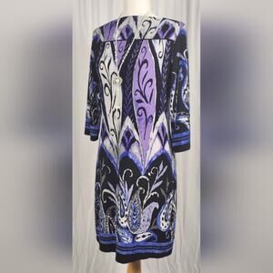 Previously loved Intermission Dress, in nice purple, black, white & indigo blue print.