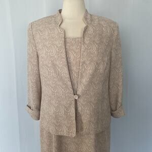 Dress Jacket 2 Piece Set Size 12 Petite 12P Beige Tan Minimal Monochromatic