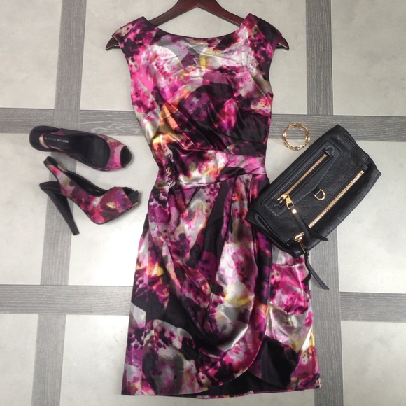 This dress is BEAUTIFUL! Has a wrap around look and hugs your body nicely. Side zipper. Very flattering dress. Used, but in great condition! The shoes have also been worn but still have so much life left in them. Shoes are a size 37 (u.s 7) Dress is a size 4! Would like to sell together. Any and all offers are welcome, and questions are encouraged!
