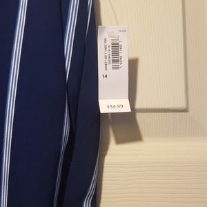 Elastic waist dress pants by old navy. Midrise, Navy blue with white pin stripes. Ankle length. New never worn.
