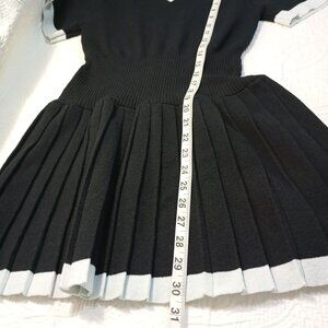 Dress Pleated Knit Black & White Collared Size M Short Sleeve