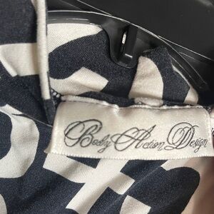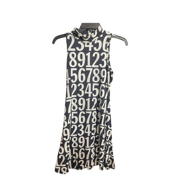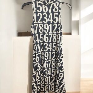 Embrace a bold look with this stylish & stretchy navy blue and white number print dress. Uniquely beautiful.