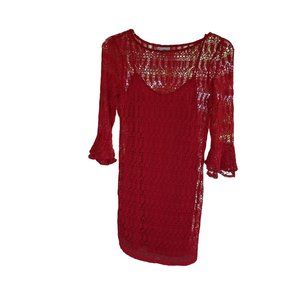 Dress Red Crochet Double Bell Sleeved Matching Liner Tagged DB