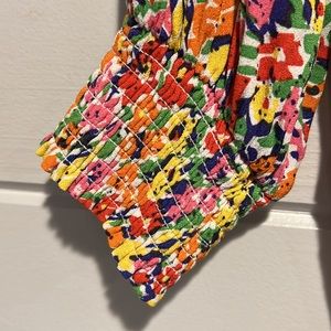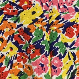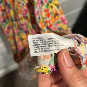 Size 2. Fabric is 100% viscose. Color is yellow,pink,blue,green,red floral.