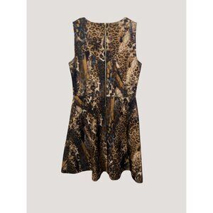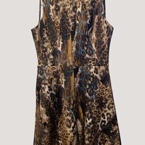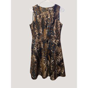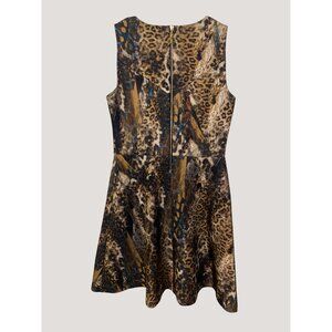 Dress Size 10 Jennifer Lopez Brown Teal Animal Print Sleeveless A line Fitted