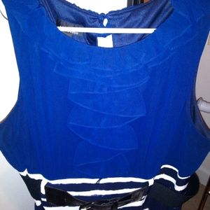 Lady's suit in navy blue, black and white with strap and sleeveless. Is very pretty