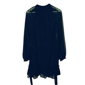 Cupshe Dress Women's S Sheer Long Sleeve Ruffle Dotted Swiss Lined Black Boho NWT