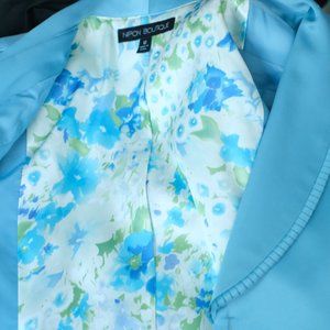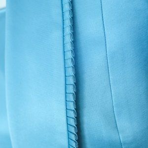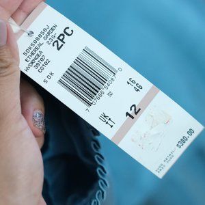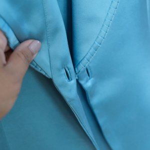 It appears there is a missing ribbon that ties blazer. You can also wear open if prefer.