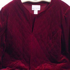 Dress Suit Susan Graver 2-peice Set Quilted Velvet Jacket Sheath Dress -M Wine