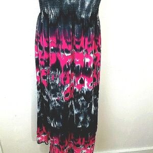 Dress Sundress built-in bra Maxi Charcoal Pink Contrast Whimsigoth Fairygrunge