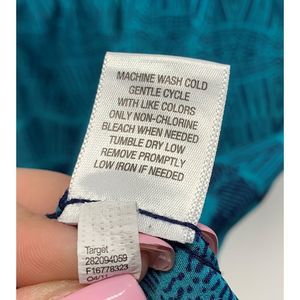 Dress Teal Scoop Neck cris cross back by Xhilaration 100% Polyester. Criss Cross Back. Scoop Neck. Gathered elastic Waist. Tank or Sleeveless style. Great for Spring with a sweater or summer. All Measurements are approximate. Pit to pit 19" Shoulder to Hem - 35", Waist - 13"