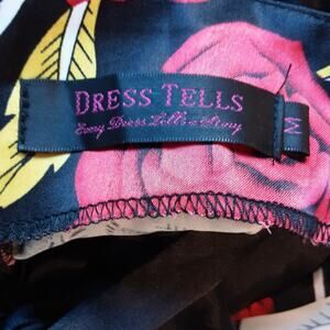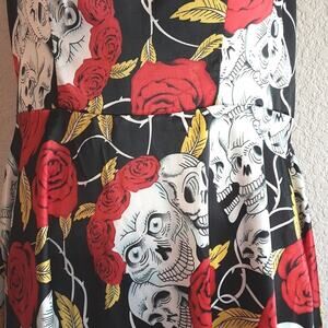 Dress Tells Whimsigoth Skulls & Roses Lace Corset Bow Back Halter Swing Dress M