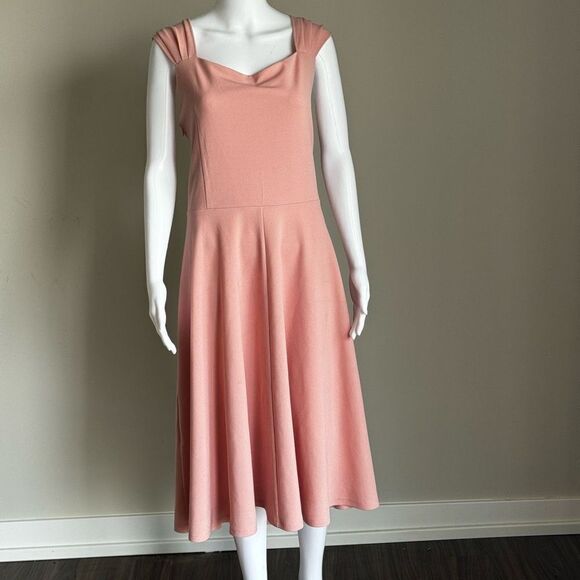 Dress Tells Vintage Inspired Cap Sleeve Dress In A Blush Color, Hidden Side Zip, V Shape Back, Size 3XL, Measurements: Pit~Pit 22”, Length 41” (under cap sleeve to hem) Fabric Is Lightweight And Has Stretch, New With No Tags