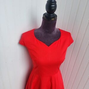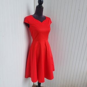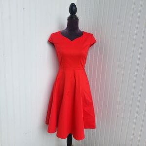 Dress Tells Womens Red Stretch Cotton Cap Sleeve Flare Sweetheart Neck A-Line S