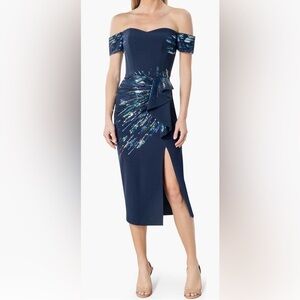 Dress The Population | Alani Off-the-Shoulder Sequin Midi Dress | Size XXL