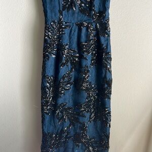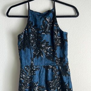 Dress The Population Ashley Sequin High Neck Sleeveless Midi Dress Teal Size XS