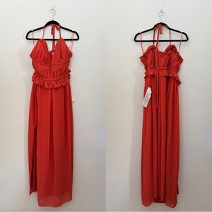 Dress The Population Athena Halter Maxi Gown Dress Poppy Orange Size Large NEW