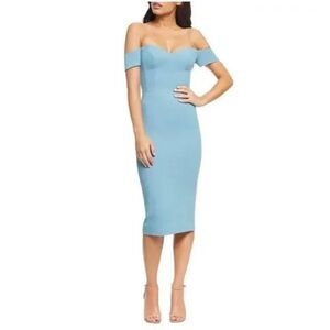 Dress The Population Bailey Off The Shoulder Dress Size Large in Seabreeze Blue