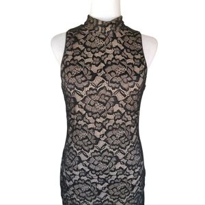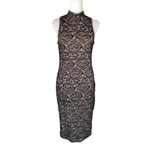 Dress The Population Black Nude Norah High Neck Bodycon Midi Dress Size Large