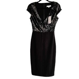 Dress The Population Black Sequin Jaleah Surplice Cap Sleeve Sheath Dress Size S