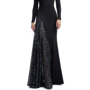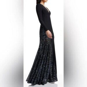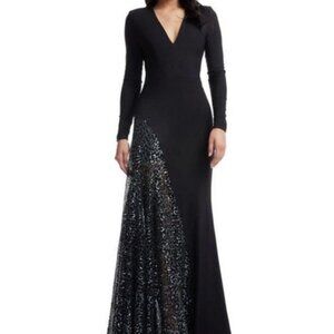 Dress The Population Black Winnie Sequin Panel Long Sleeve Gown