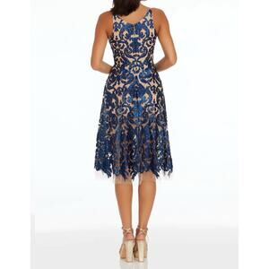 Dress The Population Blair Dress Womens Small Navy Nude V-Neck Fit & Flare Party