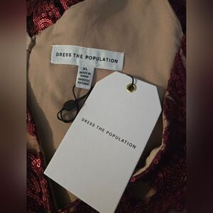 Dress The Population Blair Embellished Fit & Flare Dress NWT sz XL Berry/Red