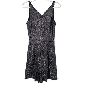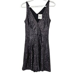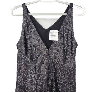 Dress The Population Blake Sequin Romper Black V-Neck Sleeveless Back Zipper Fully Lined NWT Women’s