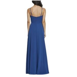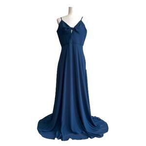 Dress The Population Blue Spaghetti Strap Knot Tie Front Side Slit Formal Gown Floor Length Maxi Dress