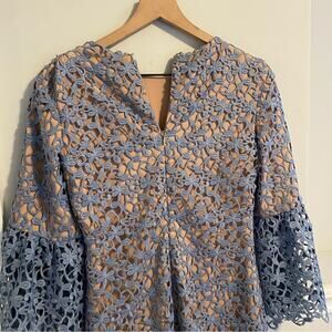 Dress The Population Blue Nude Floral Lace Long Sleeve Mini Dress Small