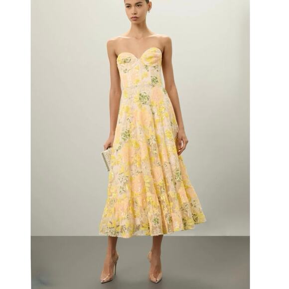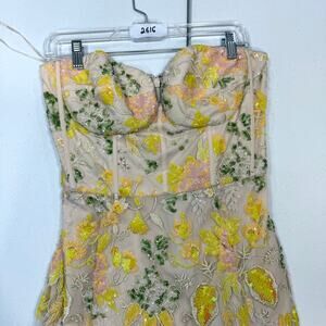 Dress The Population Carina yellow sequin strapless midi Dress Size XL