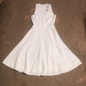 Dress The Population Catalina Fit & Flare V-Neck Sleeveless Crepe Dress White XS. Extra Small = 2-4. The Catalina is a crepe cocktail dress with a fit and flare silhouette and a v-neckline that flatters all body shapes. The bodice is fitted and tapers in to hug the waist, and the knee-length full skirt is playful but polished. This off-white sleeveless dress has modest straps wide enough to cover the shoulders and two side pockets. Fully Lined. Fit & Flare. Pockets. Perfect for a bride - bridal shower, rehearsal dinner, bachelorette party, and any other wedding festivities. Approx measurements: 15“ pit to pit, 12.25“ waist, & 40“ length. New condition. No stains/flaws. Smoke/pet free home. Offers welcome. Bundle & save. Ship same/next day. Packaged w/ care.