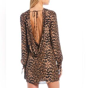 NWOT Dress The Population Dahlia Leopard Print Long Sleeve Shift Dress XS (Can fit a Small) please see measurements