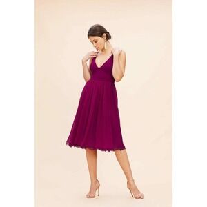 NWT Alicia Chiffon Midi Dress The Population Dark Magenta Women's Size S
