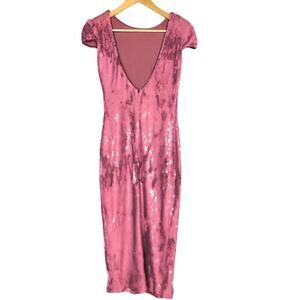 Dress The Population Dress Sequin Embellished Cap Sleeve Low Back Midi Pink S