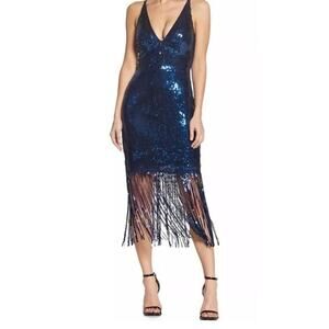 Dress The Population Dress Sz XXL Blue Sequin Fringe Formal Party Wedding Plus