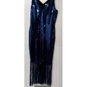 Dress The Population Dress Sz XXL Blue Sequin Fringe Formal Party Wedding Plus