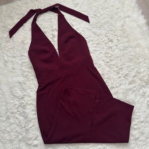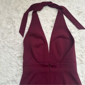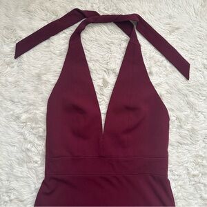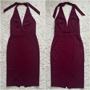 Dress The Population Dress Vanessa Halter Midi Plunge Neckline Burgundy M