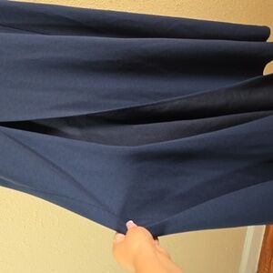 Stunning navy blue evening gown with a deep V-neck and side slit. Perfect for formal occasions.