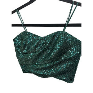 Dress The Population Emerald Green Sequin Bustier Top Size