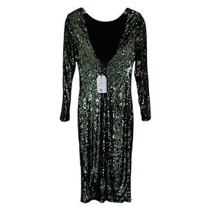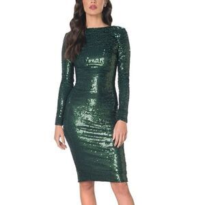Dress The Population green allover sequined long sleeve Bodycon scoop back midi dress.